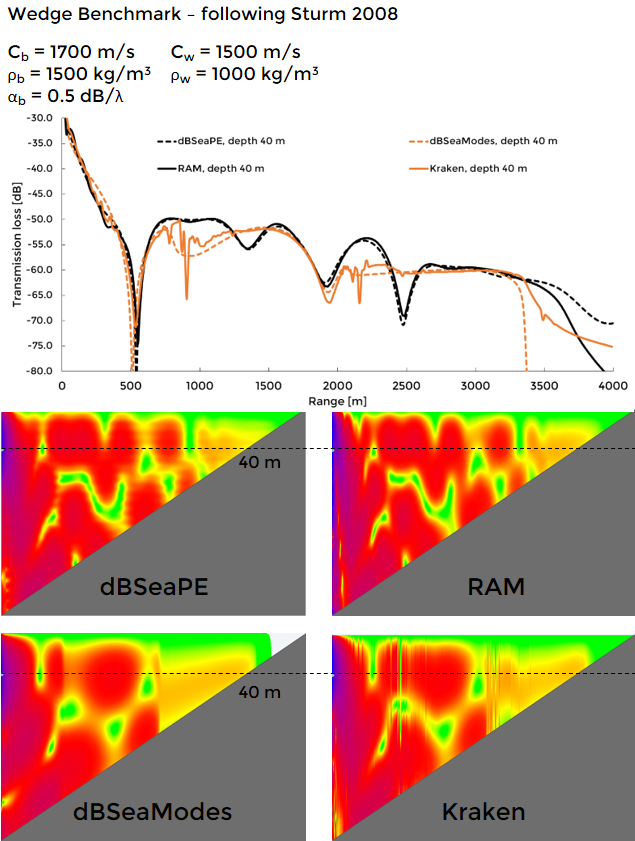 For a flat waveguide Kraken and dBSeaModes agree very well. I did not manage to get RAM running for this scenario yet, but hope to have that issue solved soon.